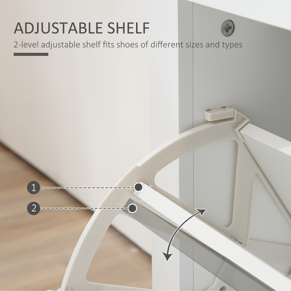 2 Drawer Shoe Cabinet Narrow Shoe Cupboard with Flip Doors White