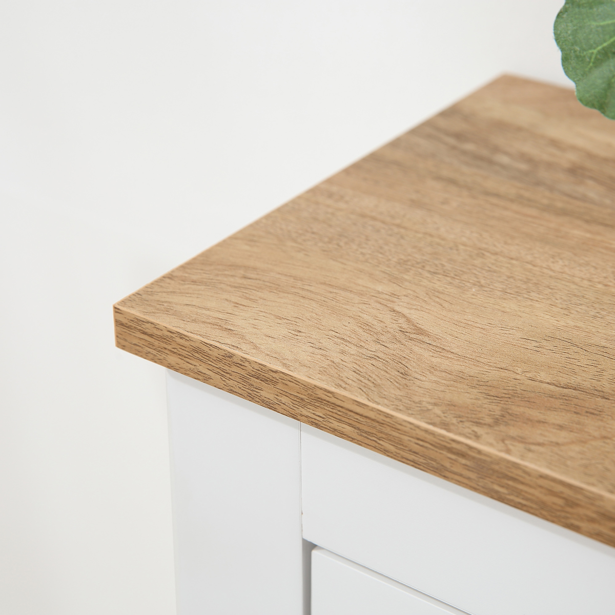HOLDS 12 SHOE PAIRS: Two drawers, each can hold six - perfect for keeping your hallway/front entrance neat and tidy. Adjustable shelves in each drawer for flexible storage.FLAT TOP: Beautiful wood effect complements the modern white finish. Extra holding room - great for keys, decorations and more.STURDY: MDF structure is durable, suitable for everyday use. Foot pads to protect floor. Safe anti-tipping design so cabinet doesn't fall forwards.DIMENSIONS: 90.5H x 79L x 23Wcm. Compartment: 36H x 66W x 9.5Dcm. Compartment two: 36H x 66W x 8.5Dcm.MAXIMUM LOAD: Whole: 10kg. Drawer: 5kg. ASSEMBLY REQUIRED.
