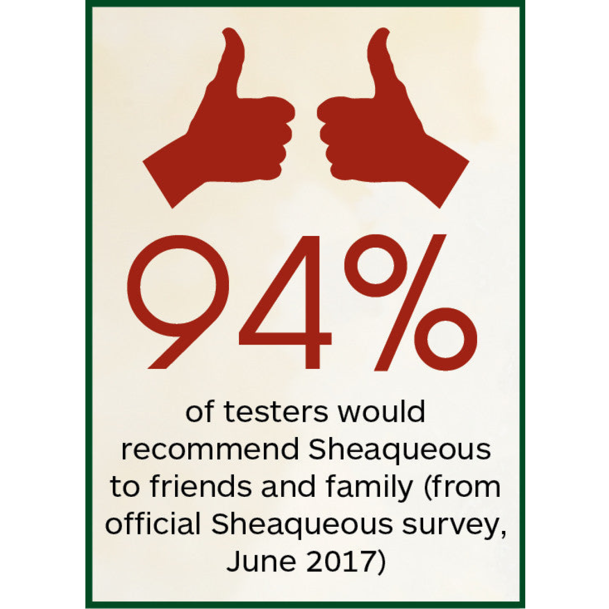 Additionally, 94% would recommend Sheaqueous Cream to friends and family.