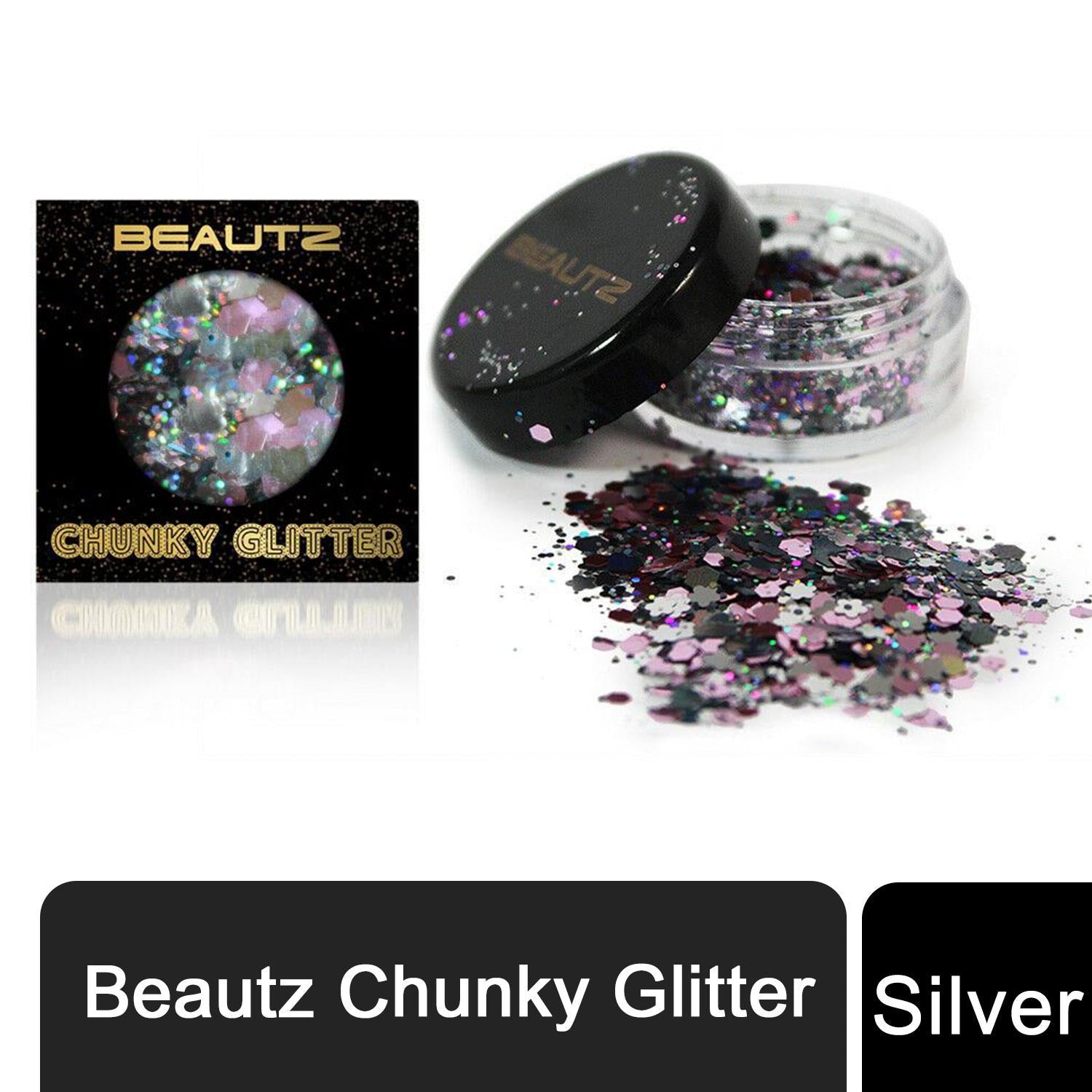 Beautz Chunky Glitter Available in 5 Varieties 10ml pot with 5g of Cosmetic Glit[Silver]