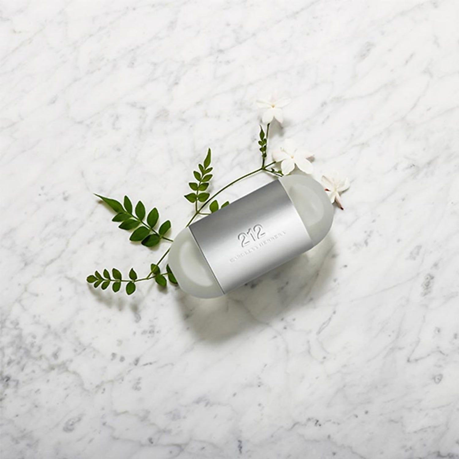 The 30ml bottle is sleek and modern, reflecting the urban sophistication of the fragrance. It features a cylindrical shape with clean lines, housed in a silver metallic casing that mirrors the contemporary essence of the 212 scent. The compact size makes it perfect for on-the-go use, easily fitting into a bag or purse.