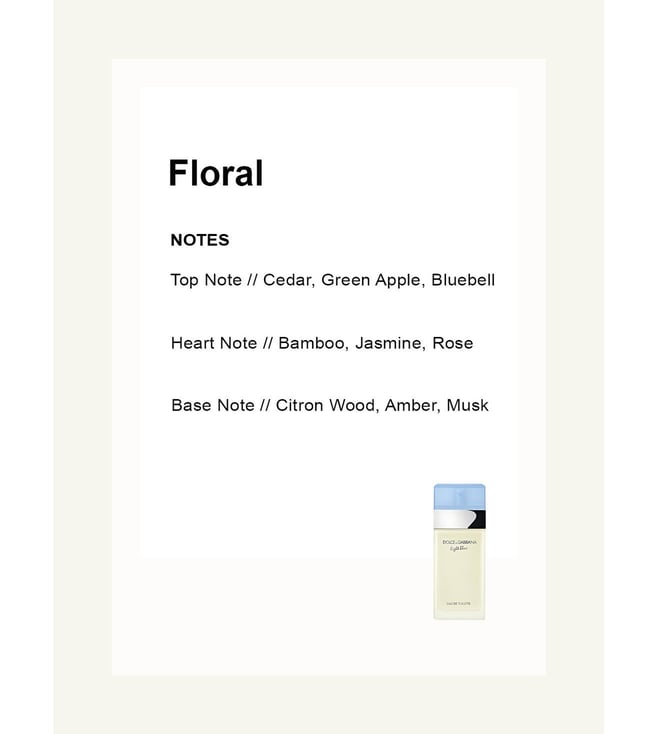 D&G Light Blue is designed to evoke the feeling of a sun-drenched Mediterranean getaway. The fragrance opens with a lively burst of citrus and fruity notes that invigorate and refresh. As it develops, the floral heart notes add sophistication and charm, while the base notes provide a warm and comforting finish. This well-balanced composition ensures that the fragrance remains vibrant and uplifting throughout the day.