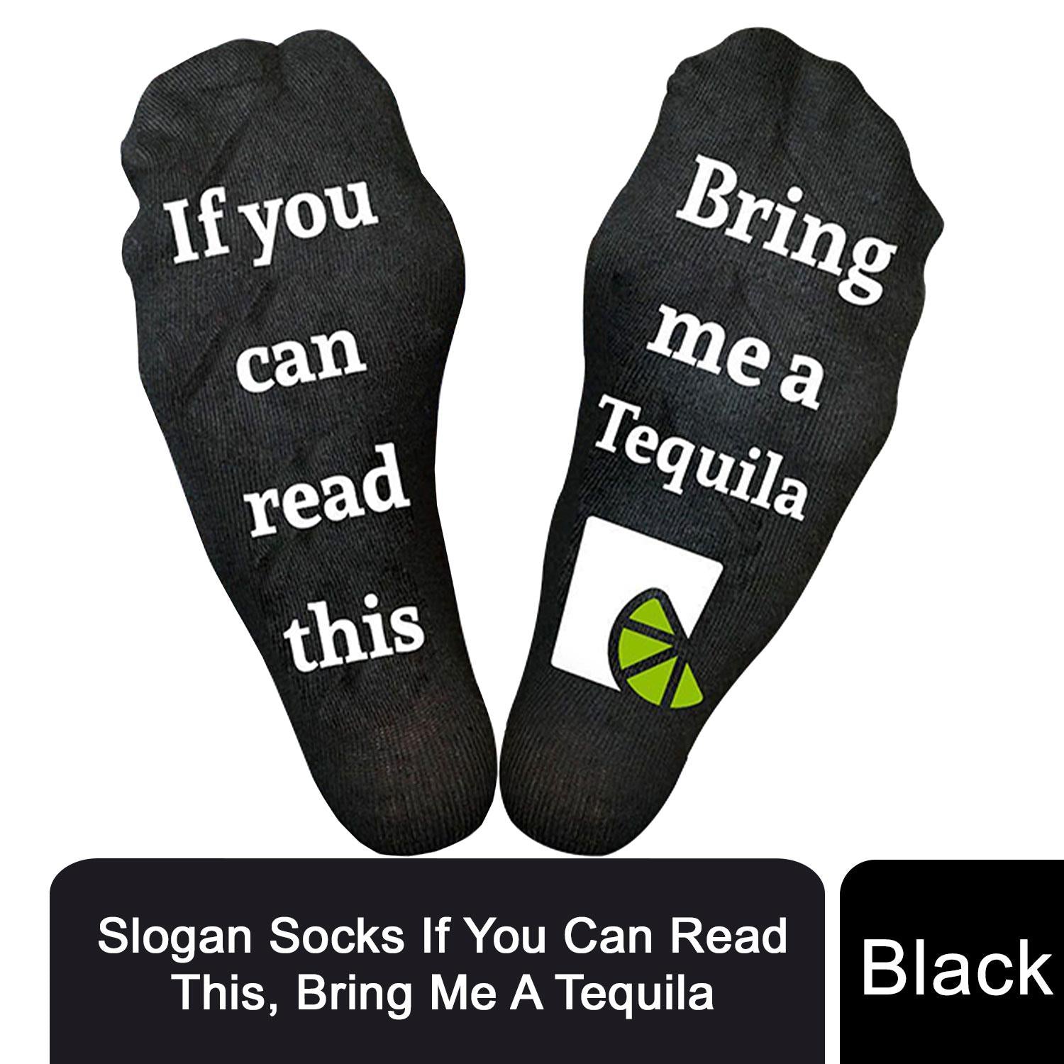 Gifting Slogan Socks, if you can read this bring me a tequila, Black, Uk Size 4-7