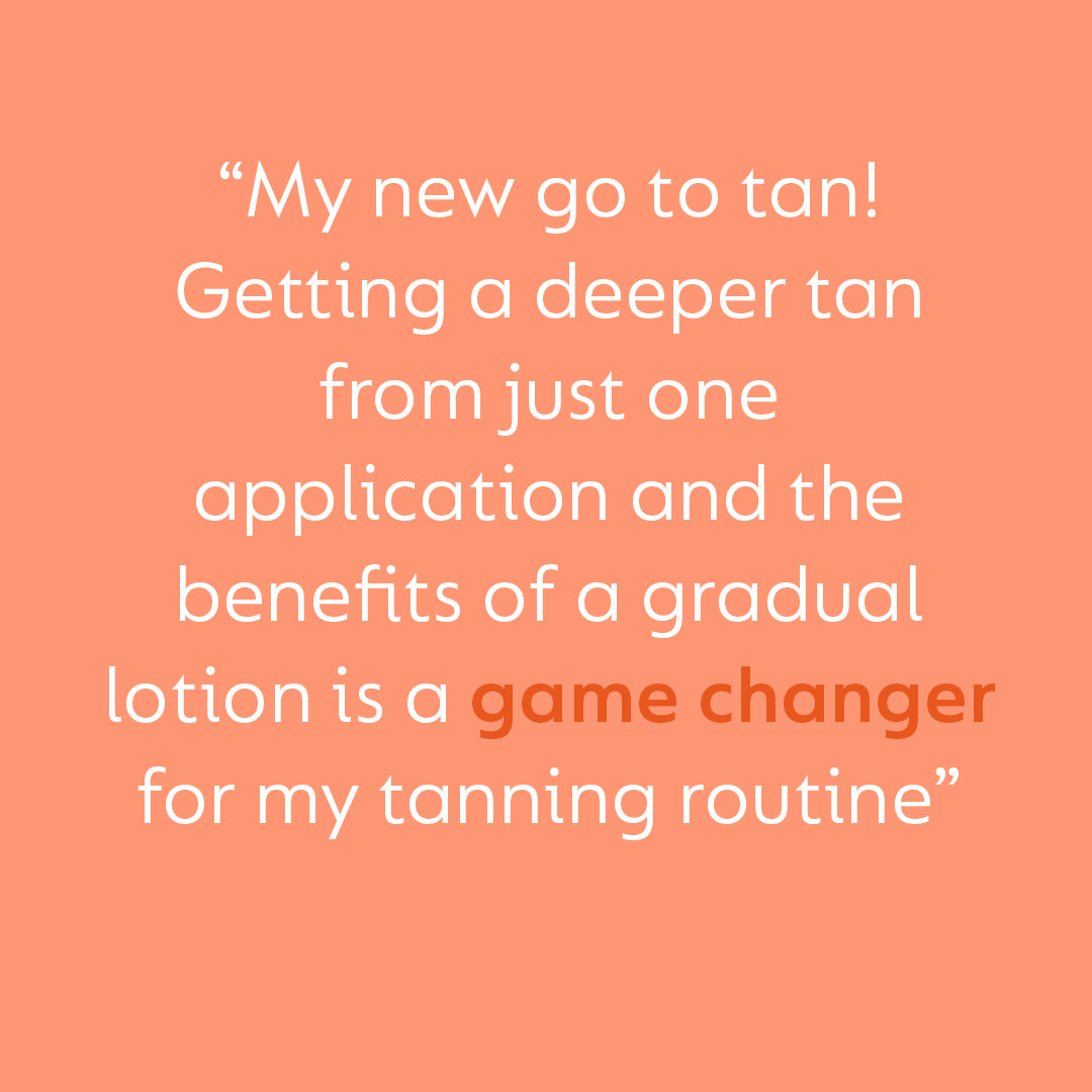Features & Benefits:•Instantly melts into the skin leaving skin looking glowing from application •Light colour guide to ensure an even application •No transfer onto sheets or clothing – apply and go •Even hint of colour after only a few hours •Multifunctional – can be used on face and body •Can be used as a daily moisturiser or tan extender
