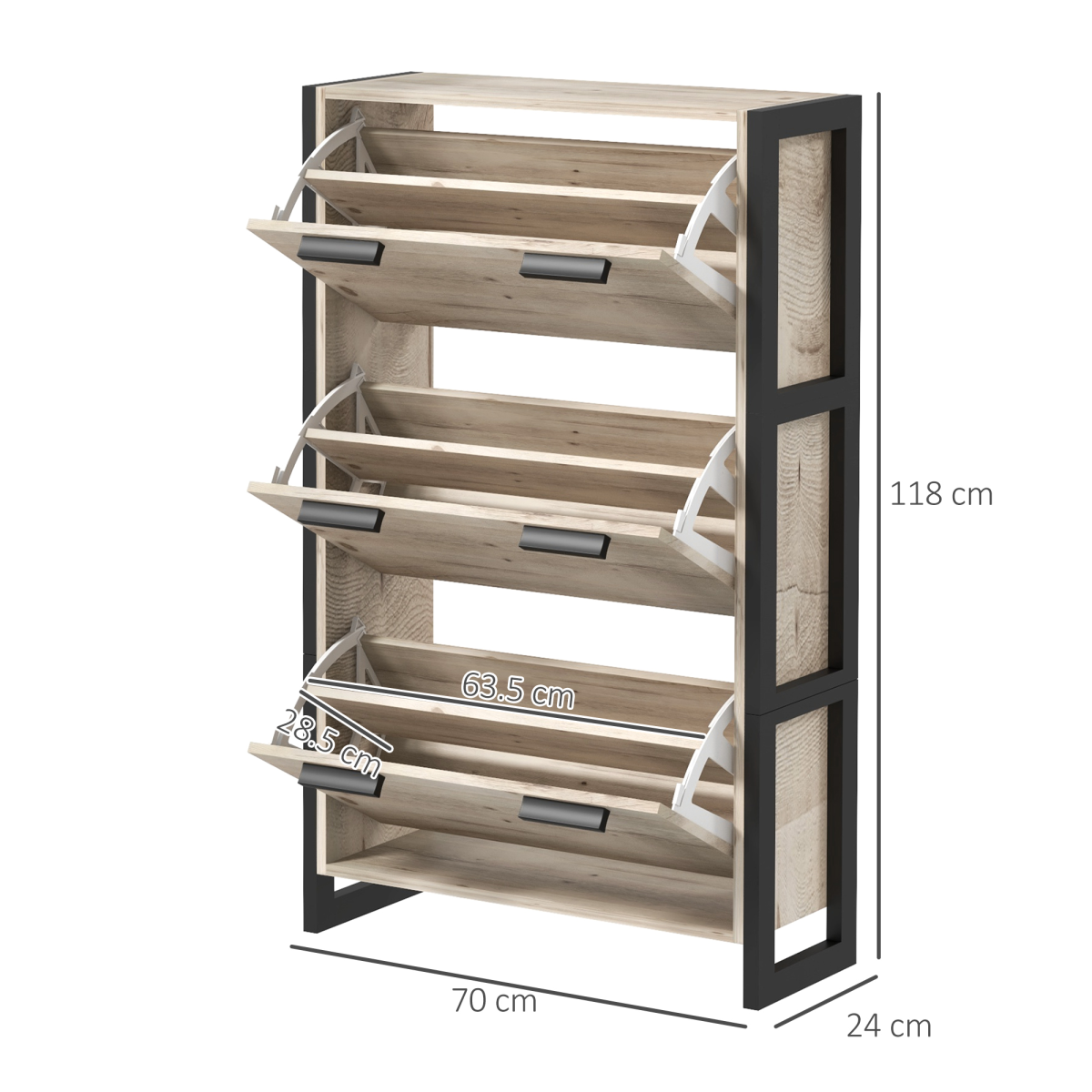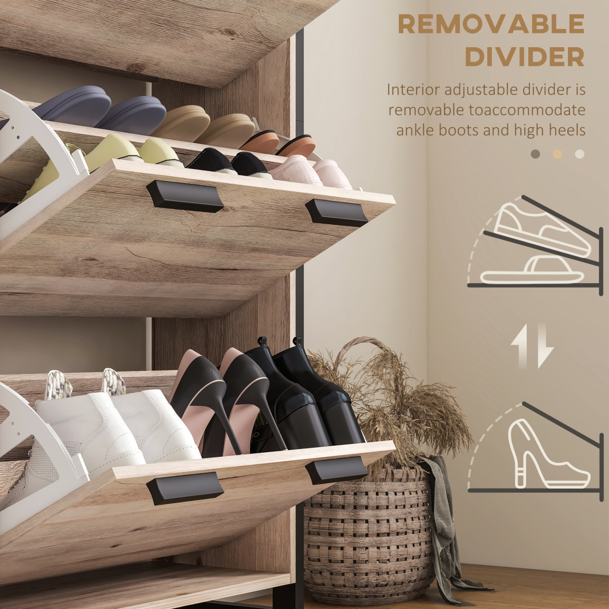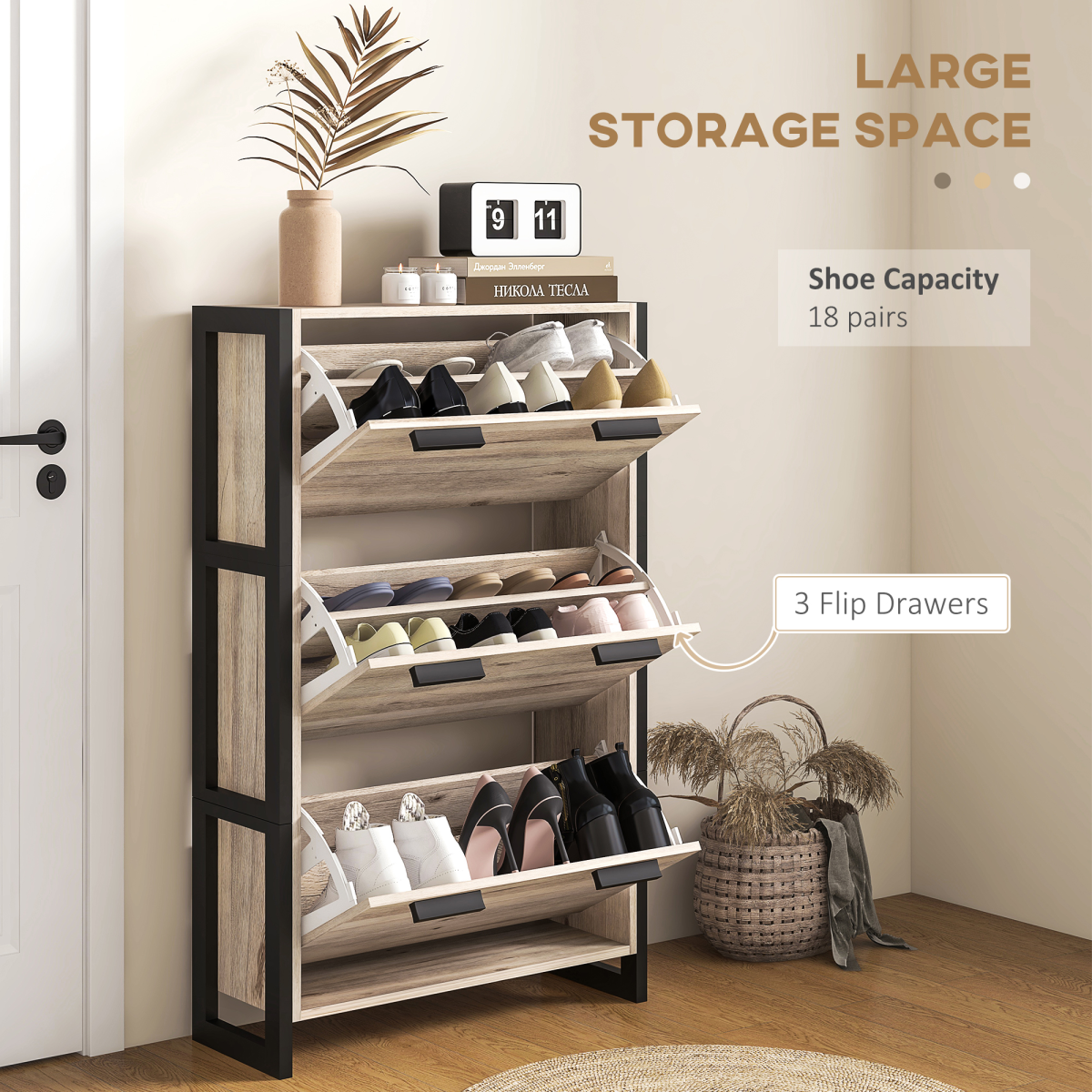 HOMCOM Entryway Shoe Cabinet with 3 Flip Drawers Adjustable Shelves Wood Handles