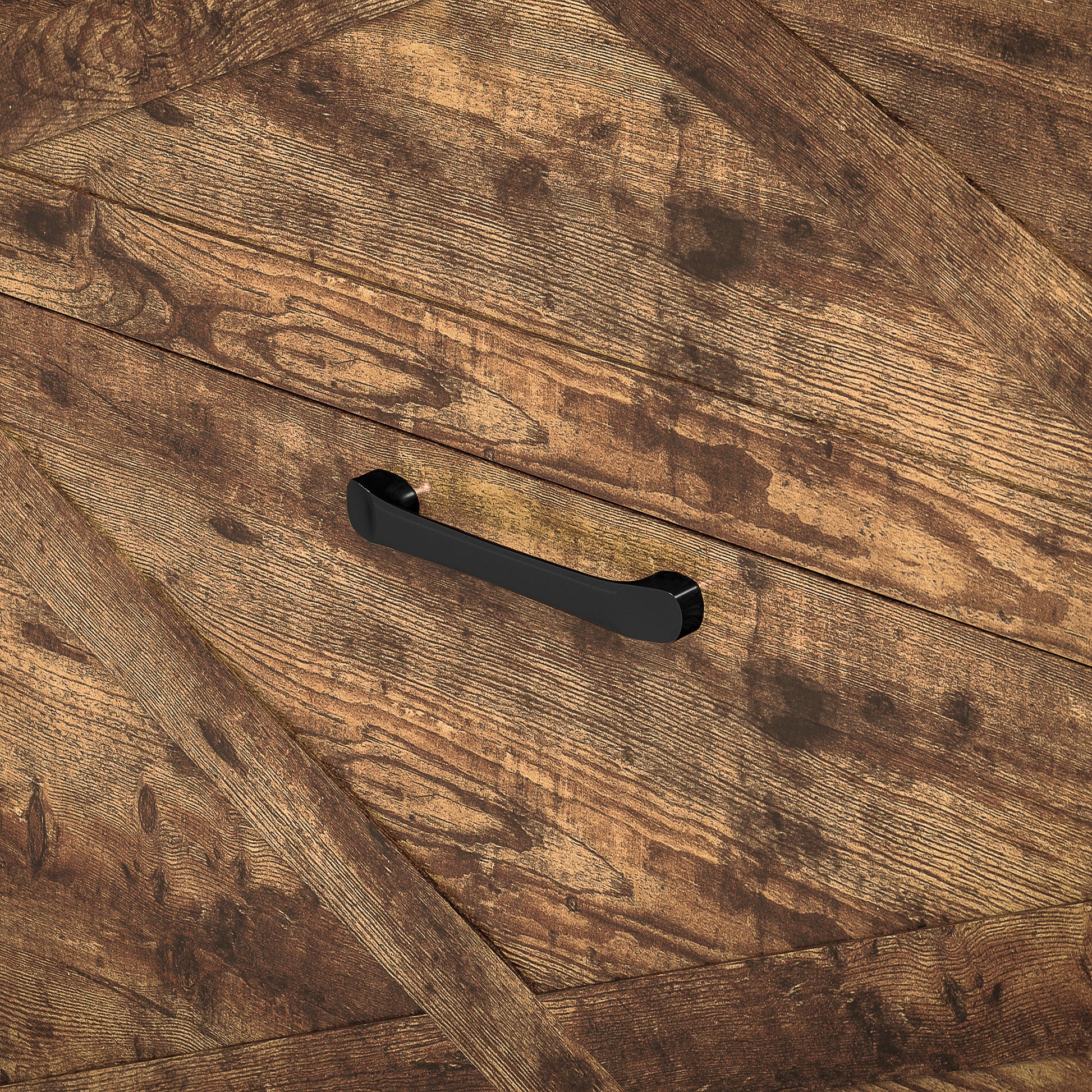 ● X-shaped barn doors on wood grain finish bring rustic farmhouse charm