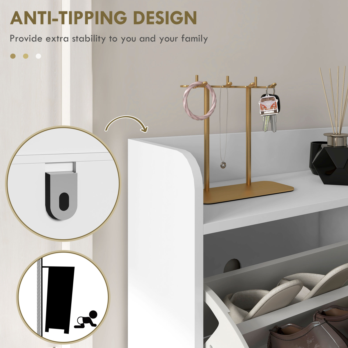 HOMCOM Narrow Shoe Storage Cabinet with 4 Flip Drawers for 16 Pairs of Shoes