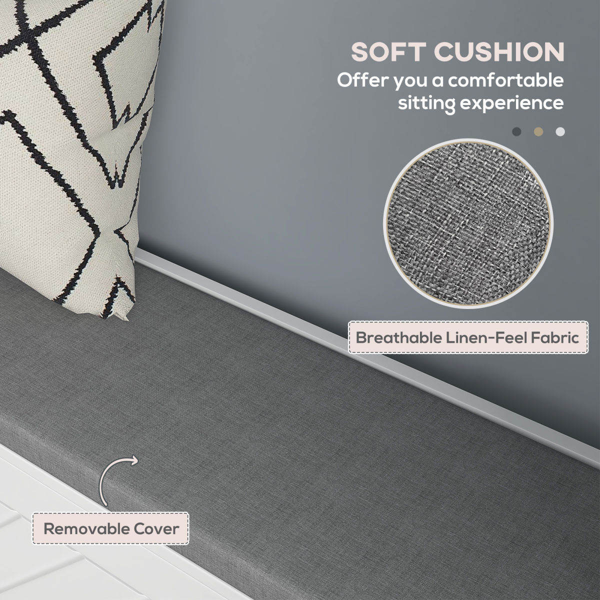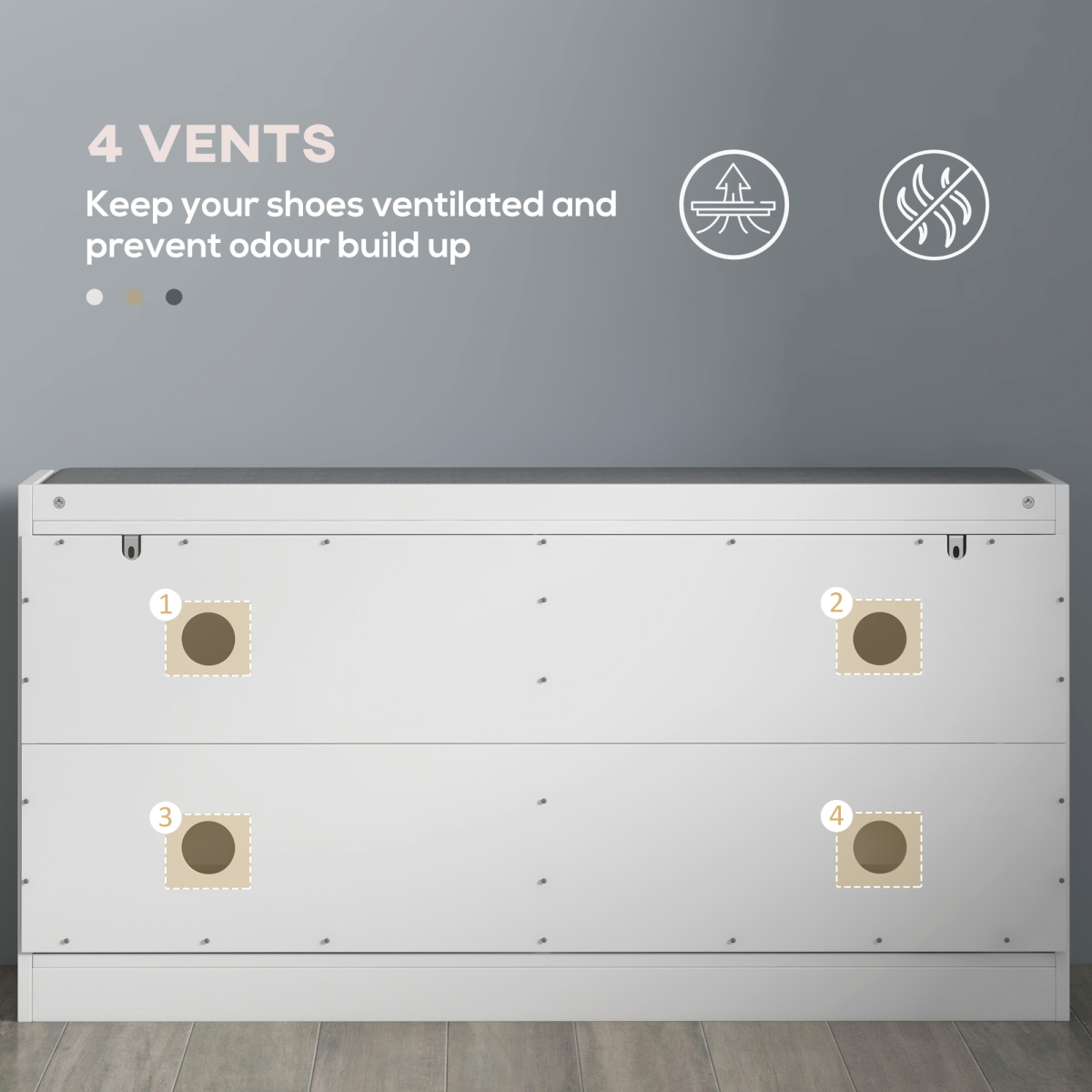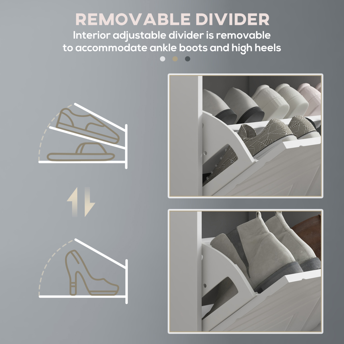 HOMCOM Shoe Bench with 2 Flip Drawers, Cushion, 8 Pairs for Entryway White