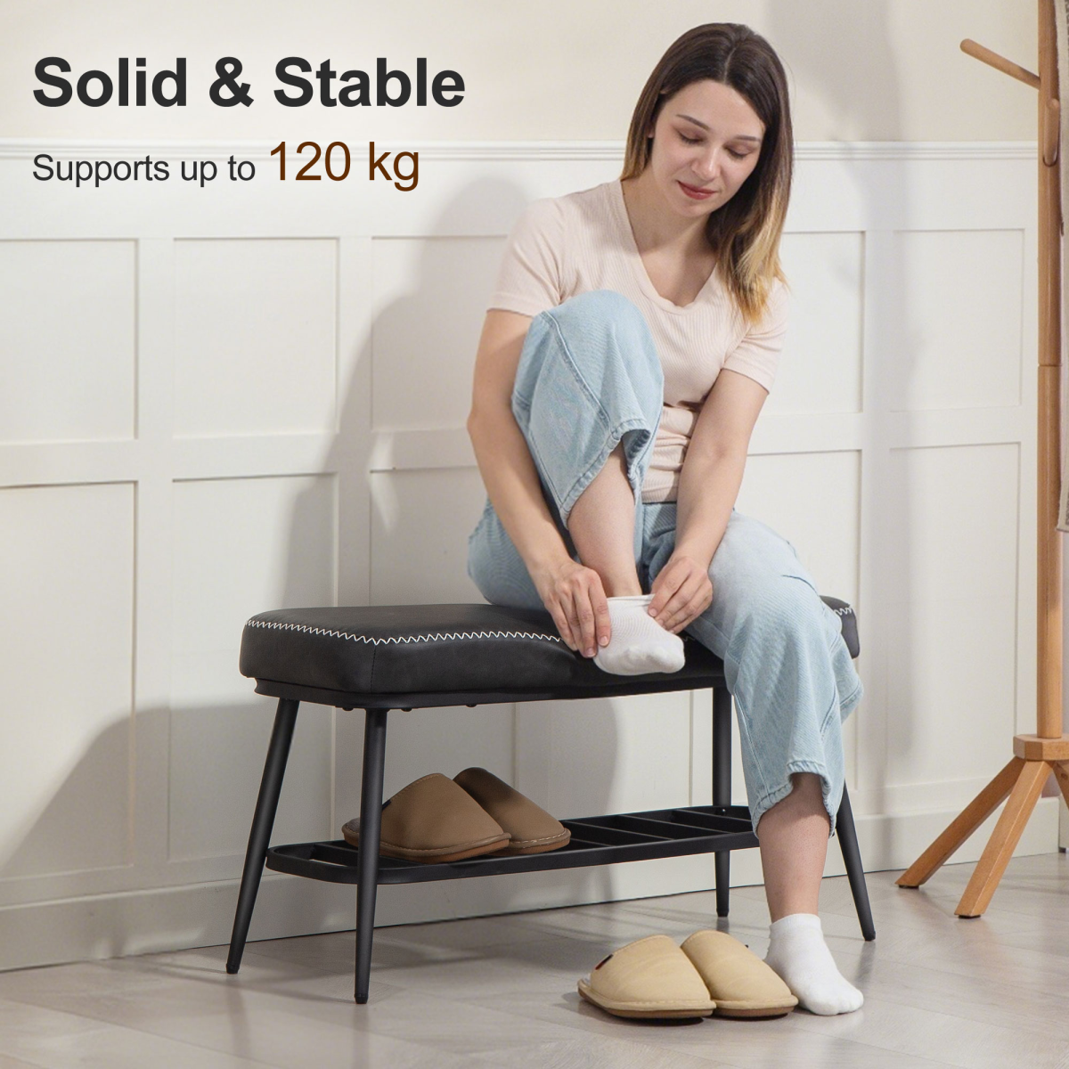 - Bottom storage shelf neatly holds four pairs of shoes, decluttering your entryway
