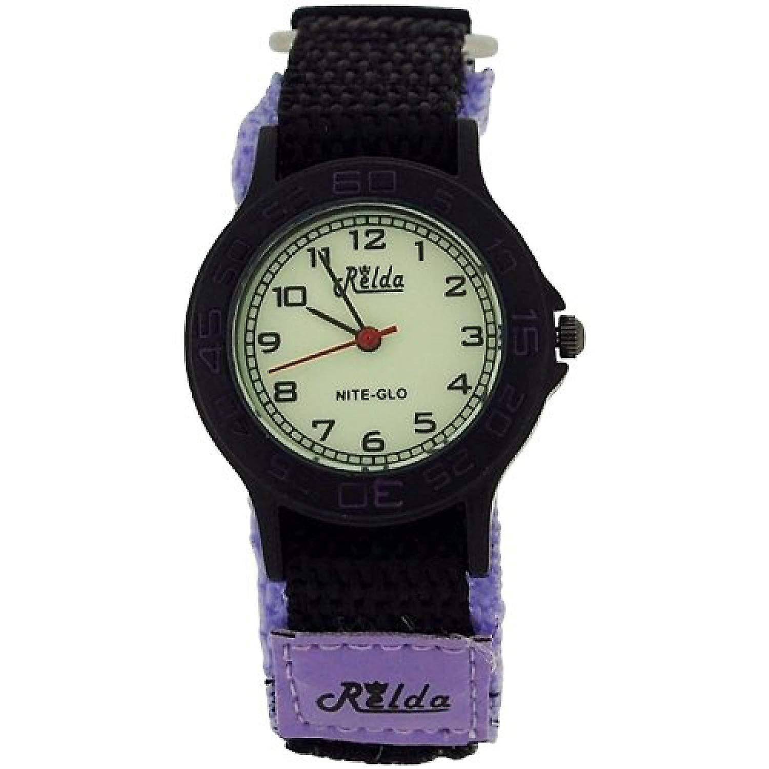 Relda Children's Analogue Nite-Glo Quartz Luminous Dial Purple & Black Velcro Girls Watch REL58